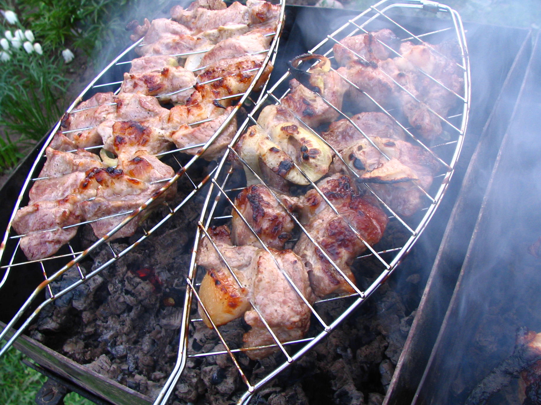 Касаемо барашков - ессесснно, магазинный (тем более "австралийский") - в топку. Хорош только естественный, природный, чистый продукт. Поэтому много лучше (вкусней, полезней) шашлык из натуральной свинины, приперчённой и сутки просоленной в маринаде "вода+лук", нежели эксперименты с магазинными "барашками", разноцветными маринадами, кетчупами и шмурдяками. Это я вам как специалист, жарящий шашлык не только летом на природе, но и круглогодично почти еженедельно дома в камине. 8)