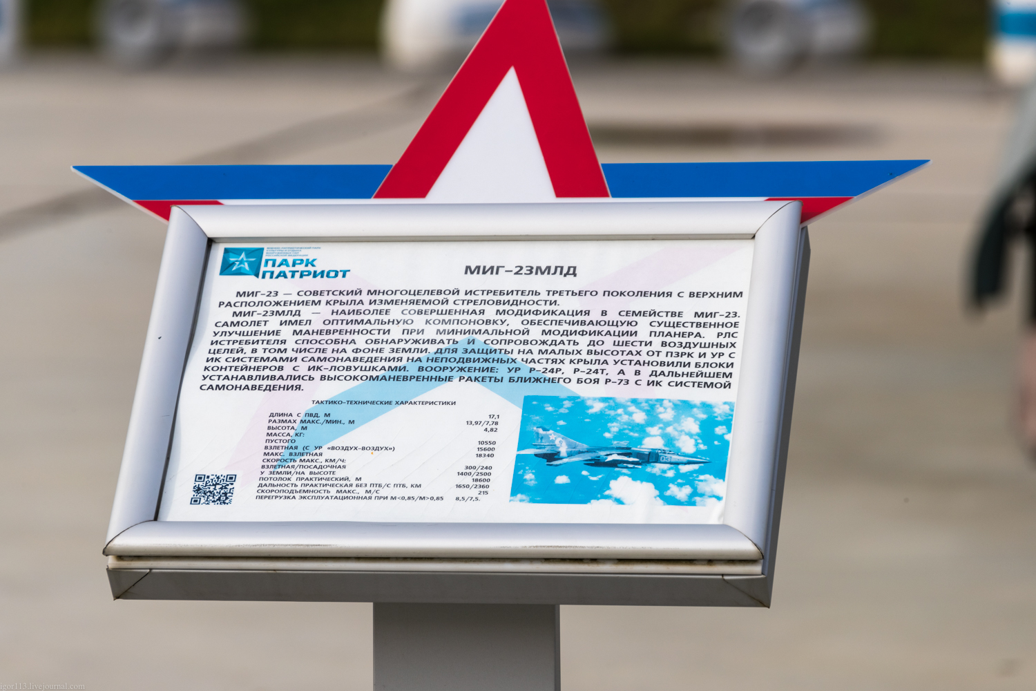 В "Патриоте" тексты табличек, как и в музее Вадима Задорожнего, пишут девочки-экскурсоводы, не знающие толком, чем Т-34-76 отличается от Т-34-85 или МиГ-23 от МиГ-27, и которые инфо ищут в Википедии. Моя попытка как-то изменить ситуацию с табличками в музее Задорожнего закончилась провалом...