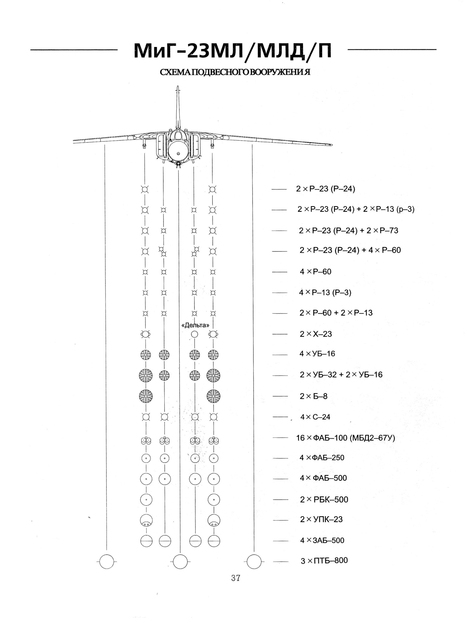 Рисунок из книги Сергея Бурдина. Почему то Дельта оказалась на левой точке подфюзеляжной подвески. И ракет Р-73 нет на крыльевых точках подвески?
