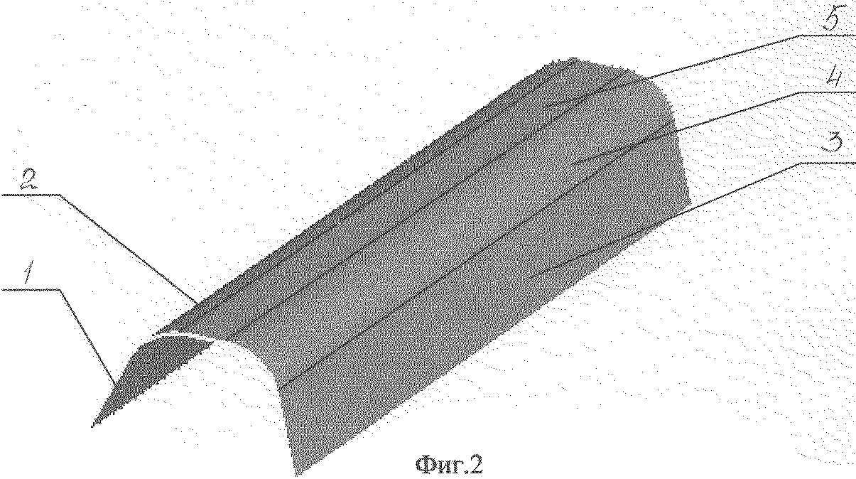 На фиг. 2 показана схема членения поверхности изготавливаемого изделия "кожух" на плоские 1, 3, 5 участки и участки 2, 4 их сопряжения.