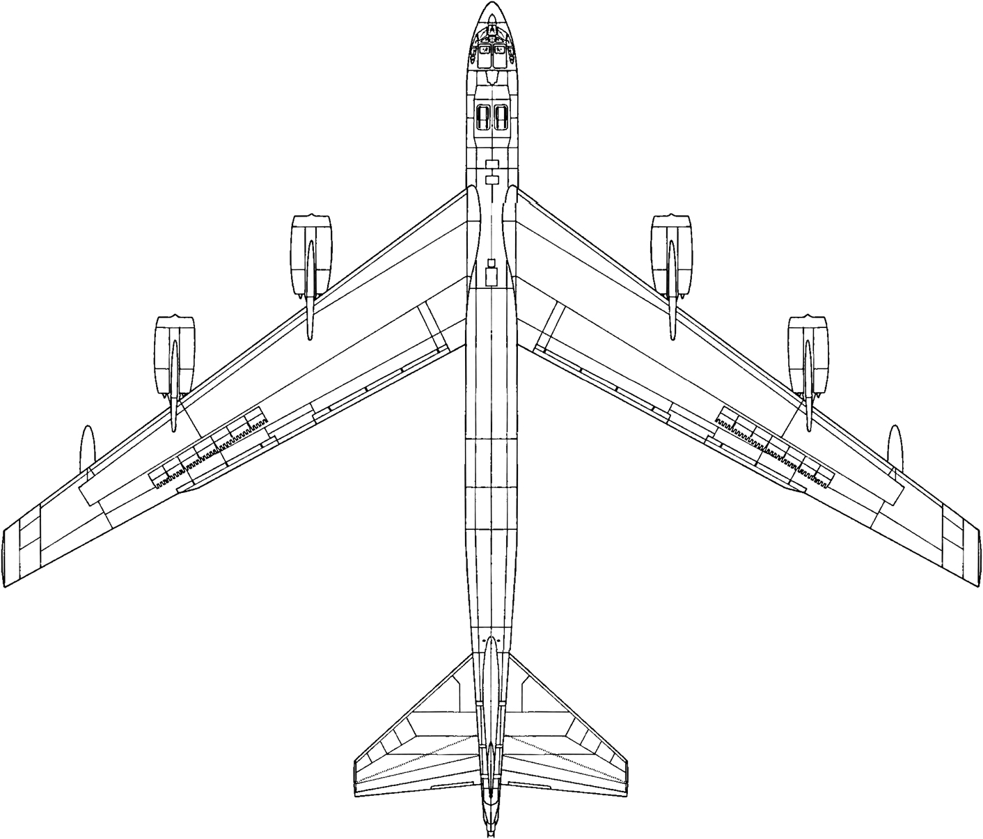 Вот интересно, отчего ему прикрутили такой сложный хвост? Кони просто не помещался в сборочный ангар, а тут-то чего? Центровку назад смещали или настолько промахнулись с устойчивостью и управляемостью, что пришлось винтить, винтить и винтить кили к самолёту?