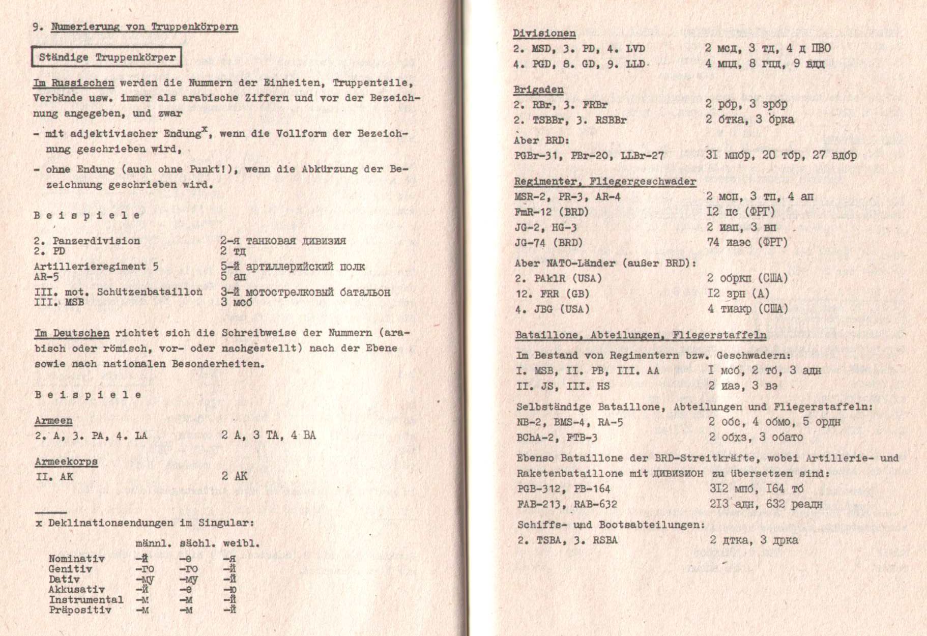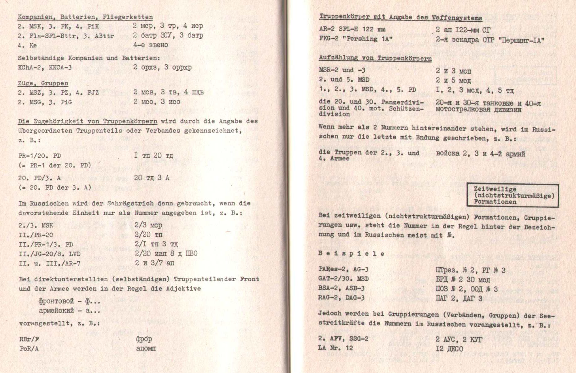 Я бывший военный переводчик ННА ГДР, и у меня сохранился соответствующий документ, Richtlinie Nr. 037/8/001 Übersetzen von Gefechtsdokumenten.
