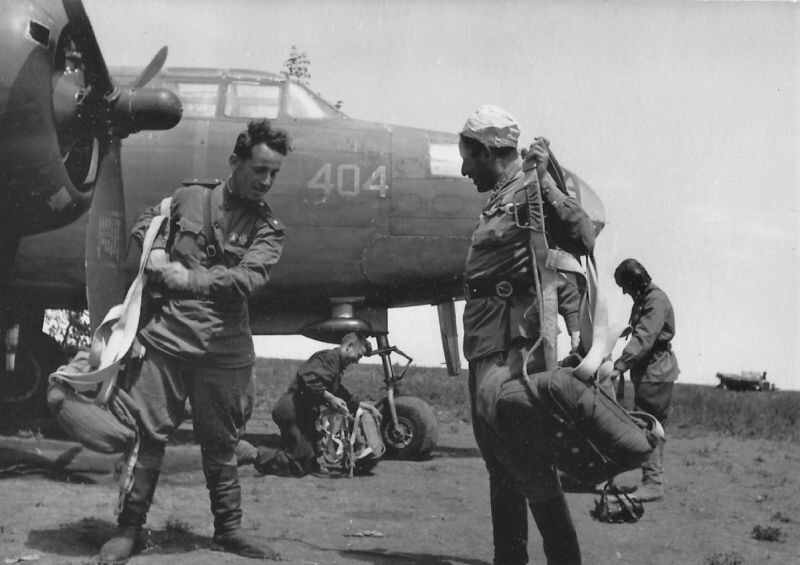 На фотографии запечатлен экипаж командира 277-го бомбардировочного авиаполка 219-й, а позднее 132-й бомбардировочной авиадивизии майора Сергея Петровича Кужелева. Справа на переднем плане — штурман авиаполка майор Зельман Львович Уринцев. https://m.ok.ru/dk?st.cmd=altGroupMe...511&__dp=y#lst
