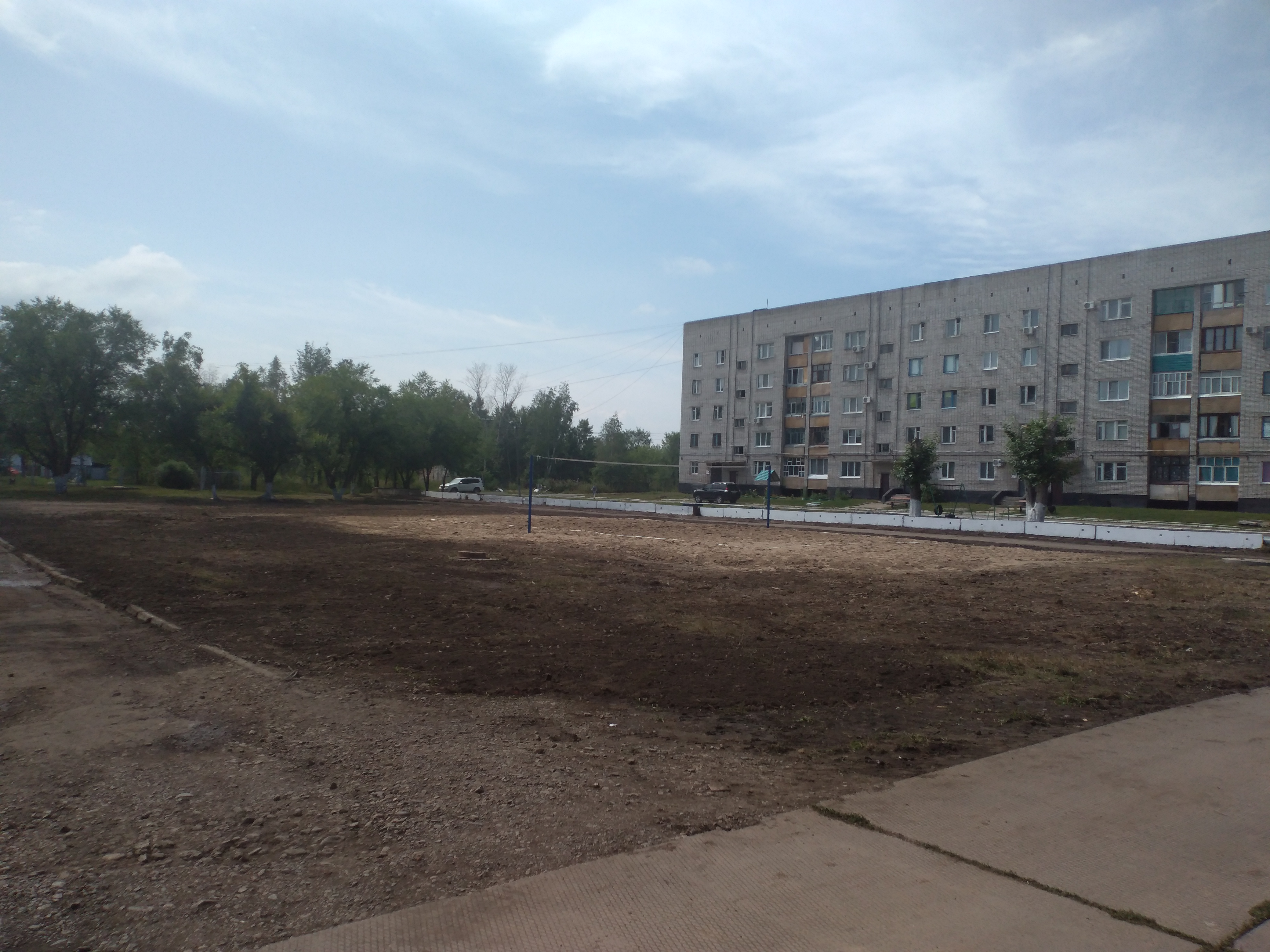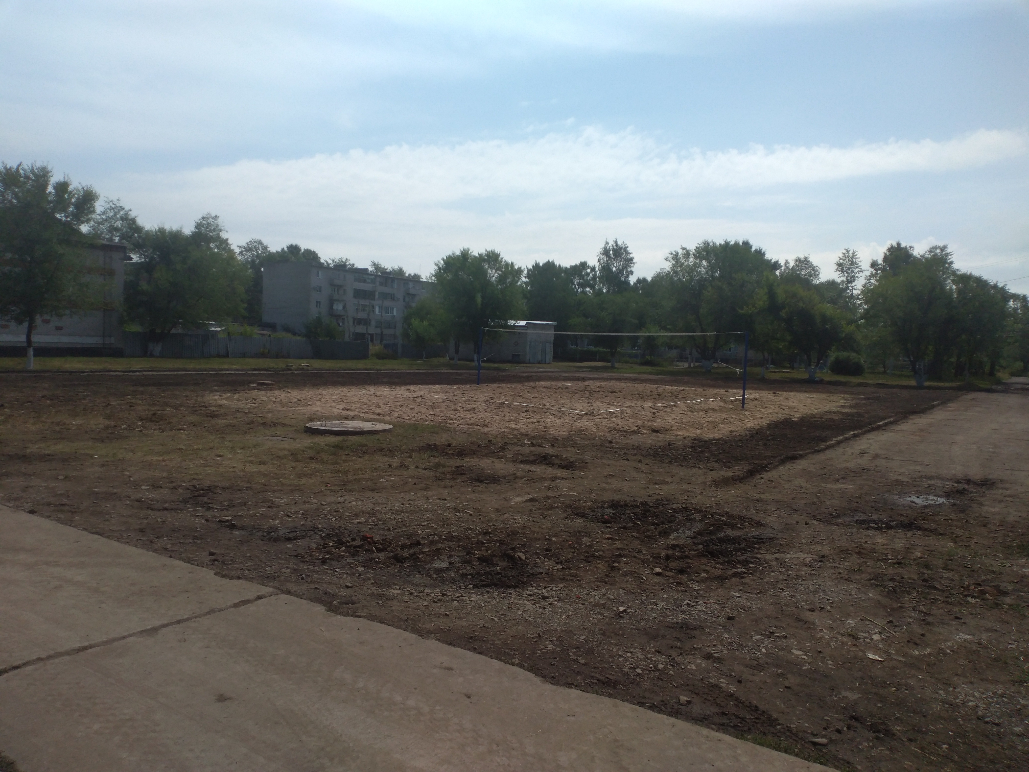 Теперь волейбольная площадка. Первая фотография сделана 06.07.2023 года, а остальные две фотографии 29.07.2023 года.