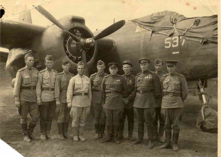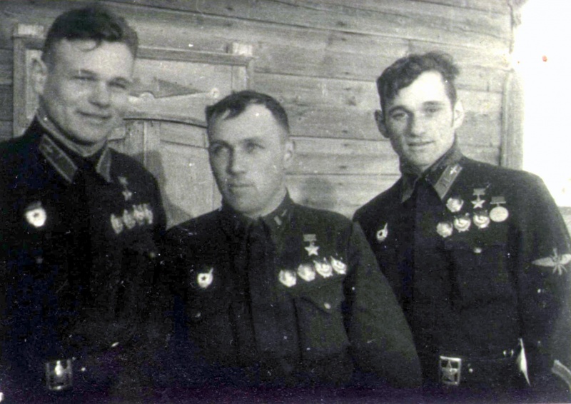 3. Комэск дальнебомбардировочной авиации майор М.Брусницын со штурманом М.Бойко и гв.капитаном Т.Несмачным.