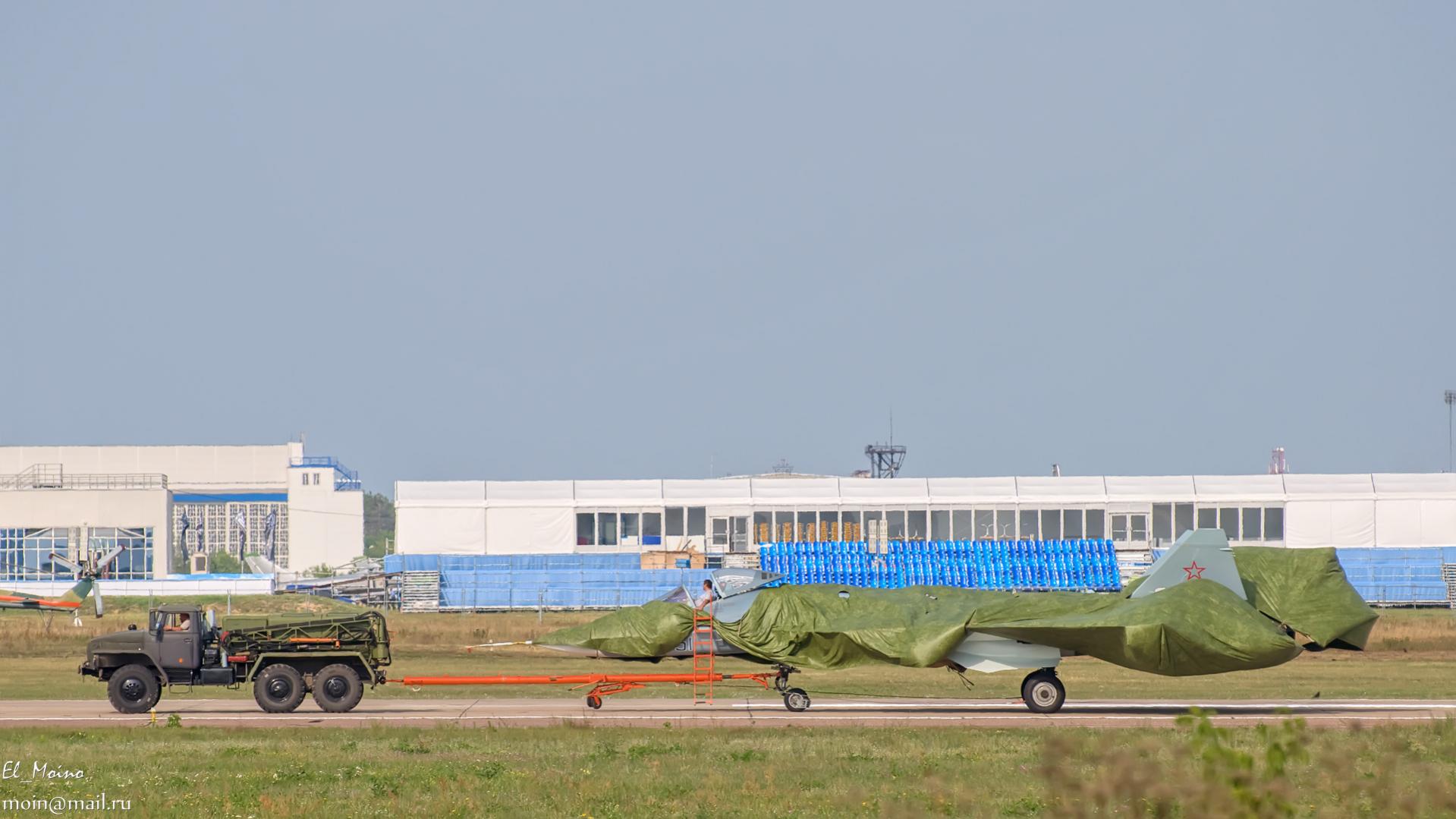 прошу прокомментировать фотографии ПАК ФА. Особенно интересует первая фотография. Что м.б. спрятано в хвостовой части самолета? Версии?