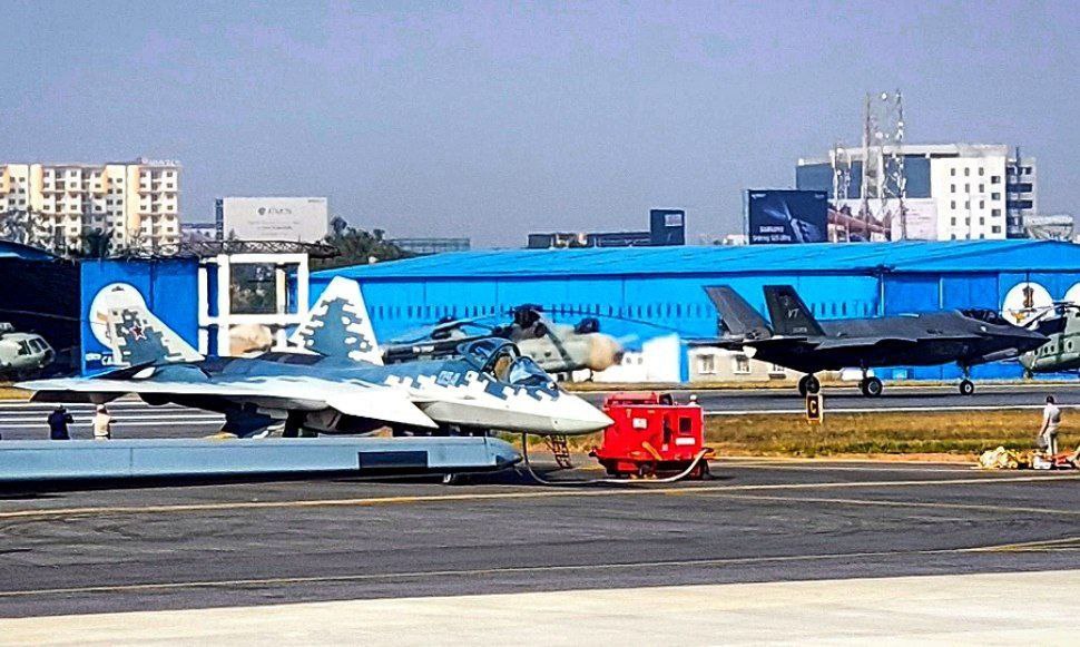 Истребители Су-57 и Ф-35 на авиасалоне в Индии https://t.me/OKB_SyKa/4643?single