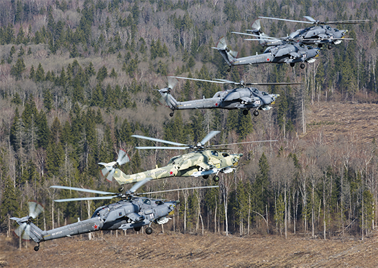 Экипажи ударных вертолетов Ми-28 готовят «Ночных охотников» к взлету"