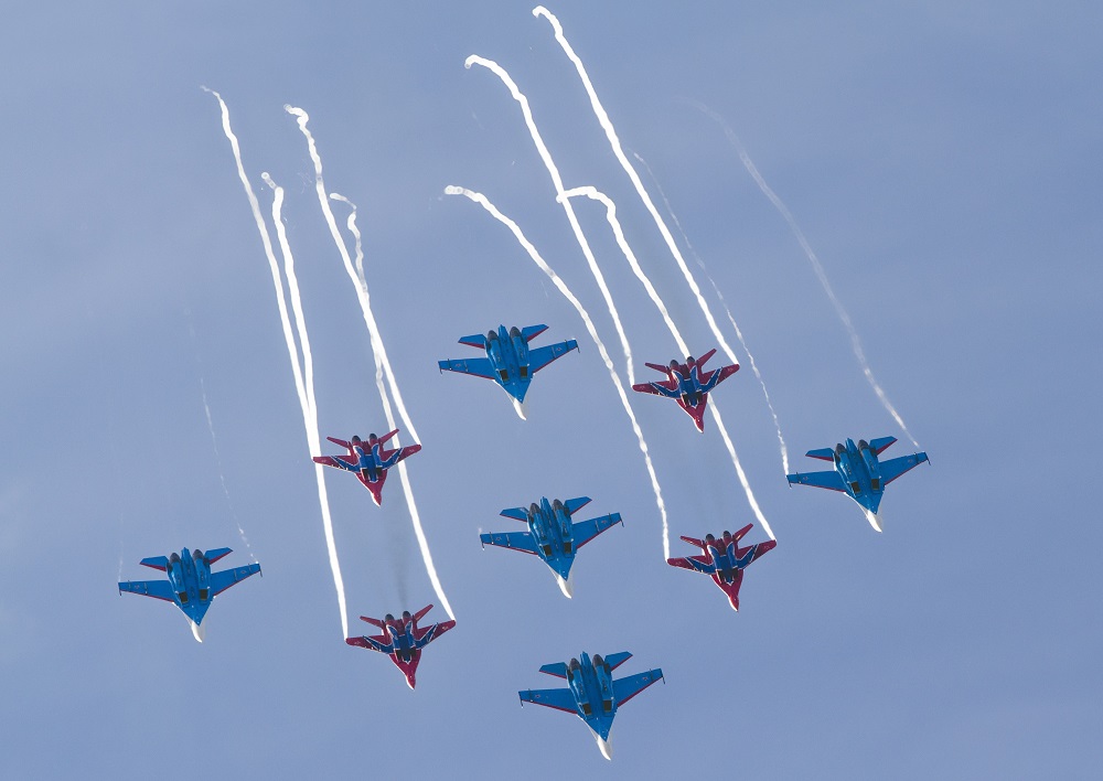 1 ЭПИЗОД - ПРОЛЕТ ДЕМОНСТРАЦИОННОЙ ТЕХНИКИ ВВС (ВЕРТОЛЕТЫ АНСАТ-У, КА-226, МИ-35, КА-52, МИ-8АМТШ, МИ-26, САМОЛЕТЫ ЯК-130, МИГ-29СМТ, СУ-34, СУ-30СМ, СУ-35