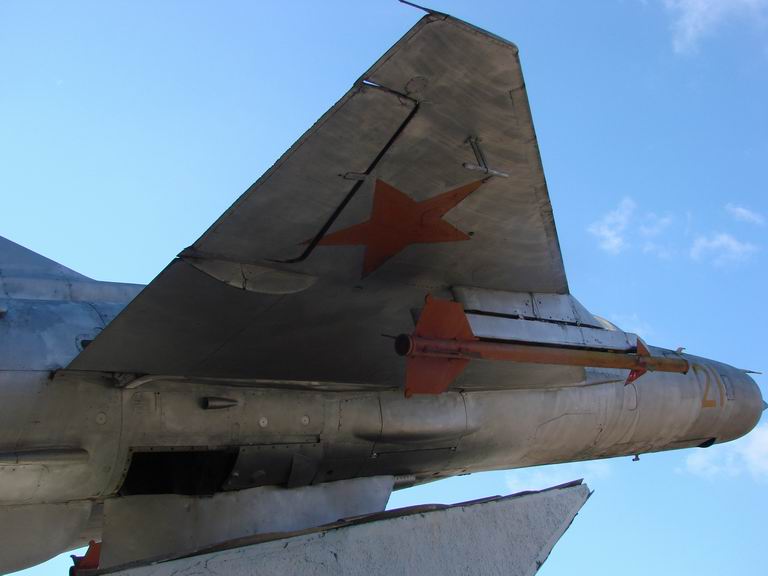 До этого известного многим МиГ-21ФЛ (бывший б/н "57") пока не добрались вплотную, полагаю, только потому, что расположен он на постаменте относительно высоко. Тем не менее, начало пололожено - одна панель уже снята, а вторая рядом - почти... Над "дырой" какой-то заботливый "авиалюбитель" оставил автограф "Саша".