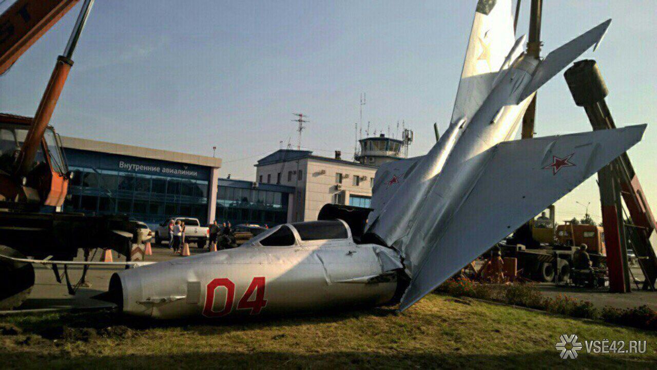 Разбившийся МИГ-21 все-таки установили на постамент в аэропорту города Кемерово – КузПресс