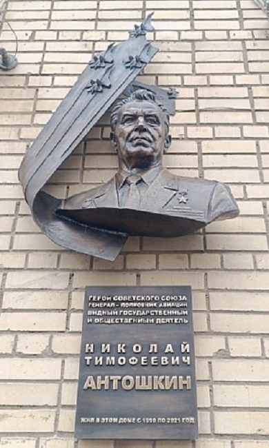 "19 декабря по адресу: улица Достоевского, дом 3, была установлена мемориальная доска в честь генерал-полковника авиации Николая Тимофеевича Антошкина. Инициатором выступила межрегиональная общественная организация "Клуб Героев Советского Союза, Героев Российской Федерации и полных кавалеров ордена Славы города Москвы и Московской области", — говорится в сообщении. Церемония торжественного открытия прошла в рамках городской программы по увековечению памяти Героев Советского Союза, живших в столице. Вложение 116503