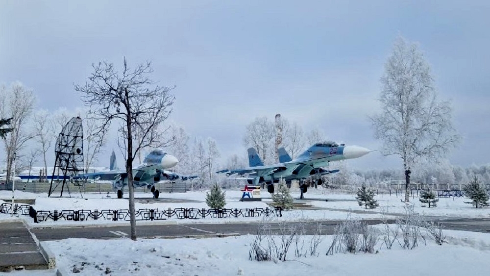 МиГ-17 б/н 01 белый на площади военного городка Хурба-2 под городом Комсомольск-на-Амуре 15 января 2025 года.