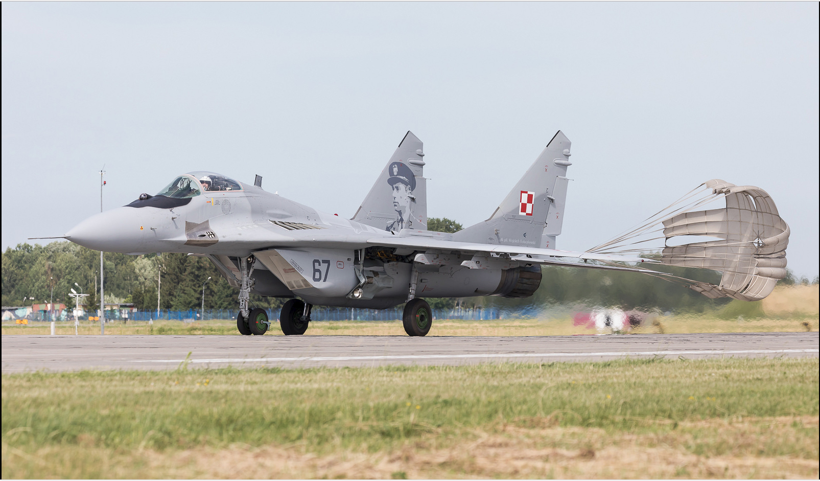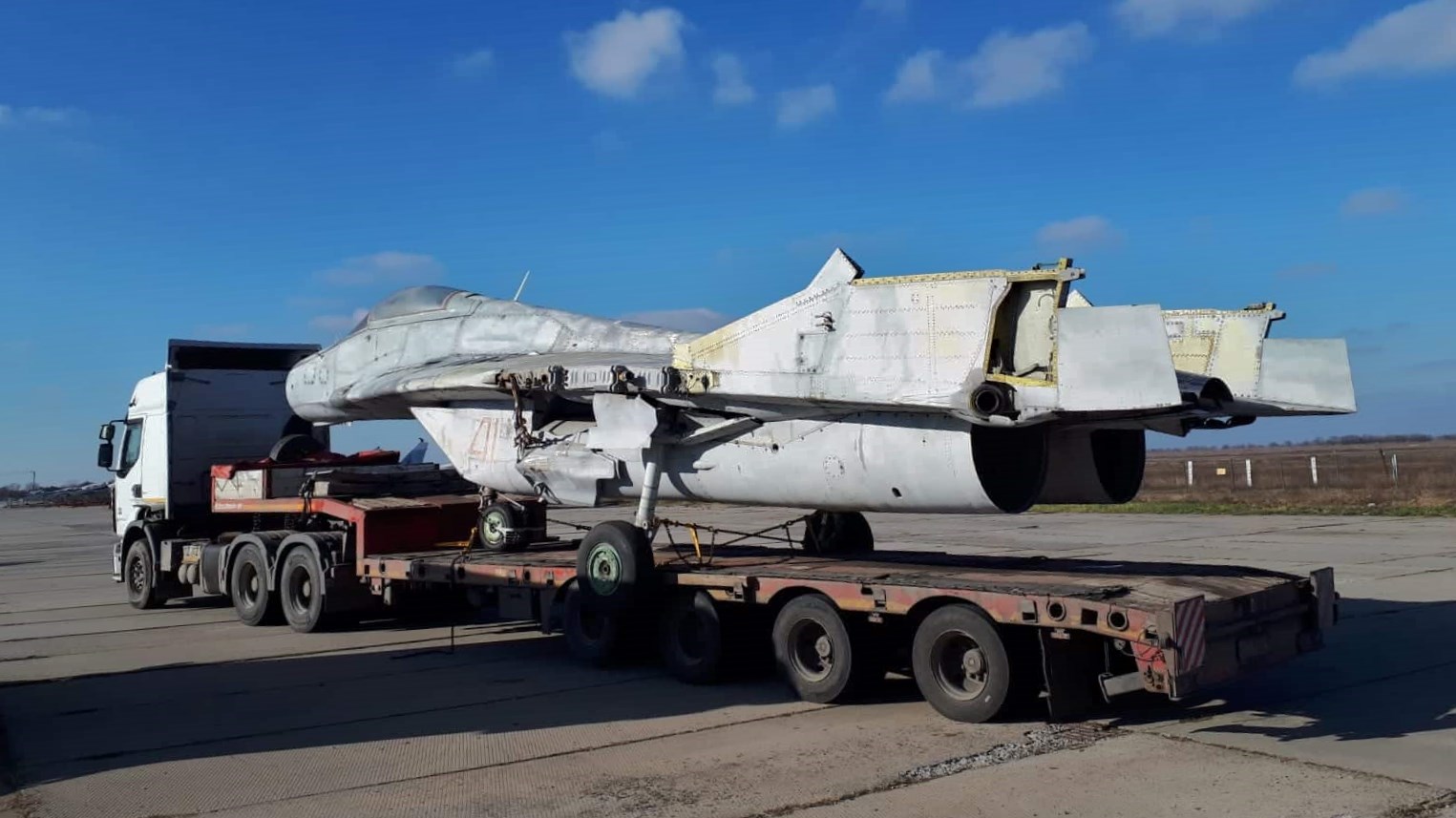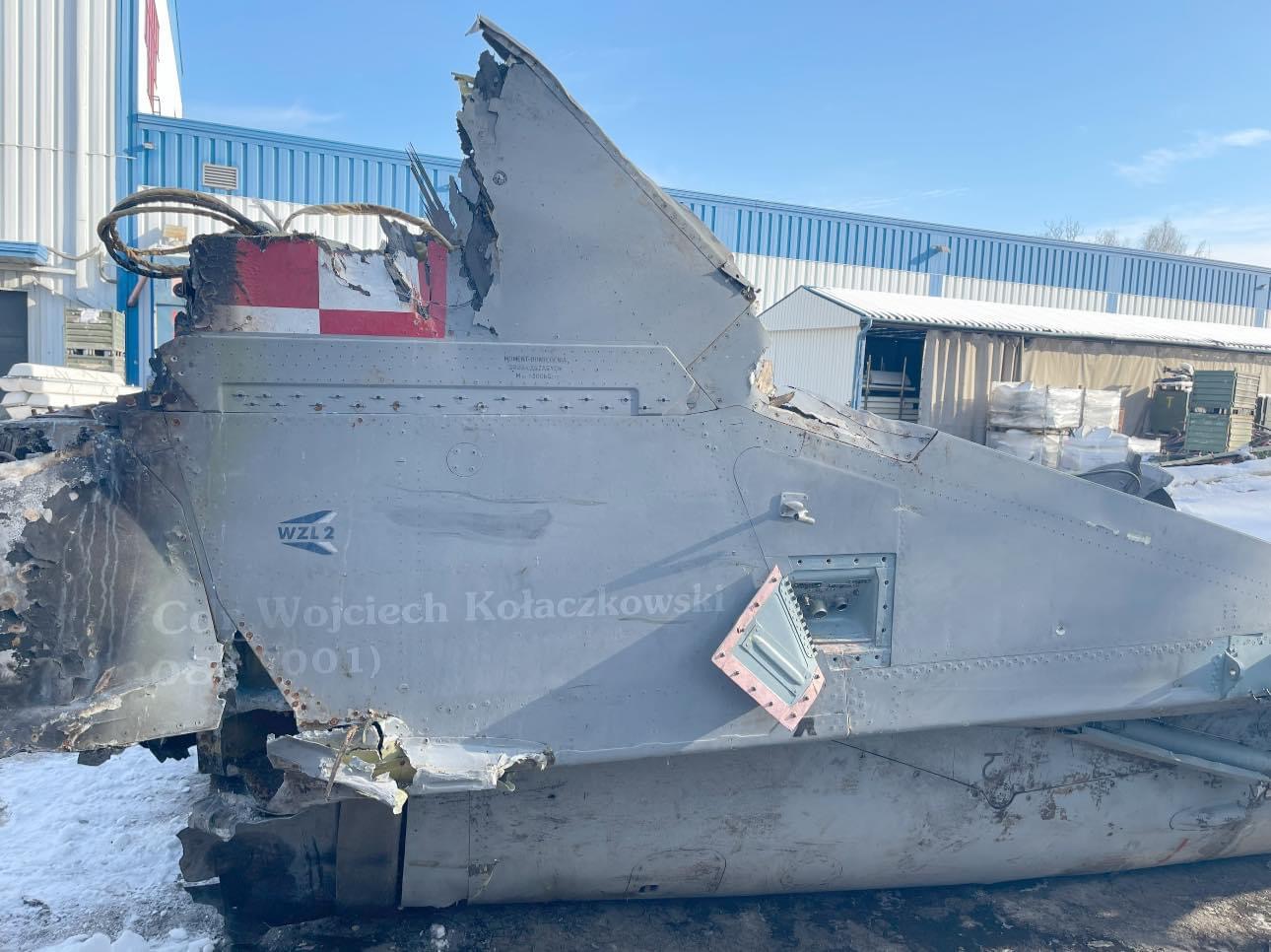 Остатки МиГ-29А №67 (3814 / 2960526367) из состава 23-ей базы тактической авиации ВВС Польши, совершившего аварийную посадку 18 декабря 2017 г. при возвращении на военный аэродром Минск-Мазовецкий.