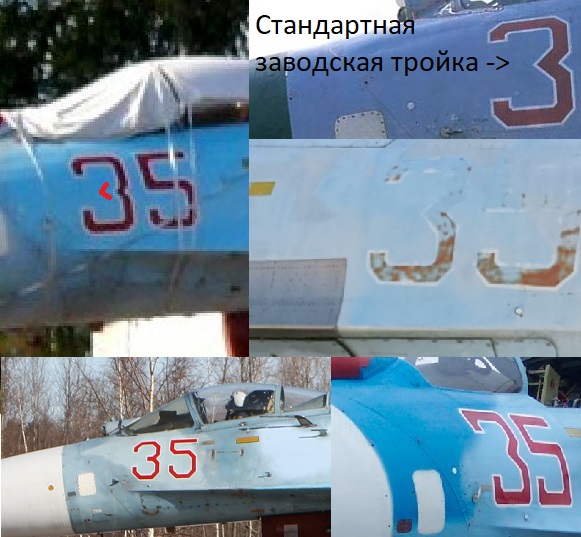 Видимо присвоили б/н 35 какому-то борту на хранении. Как раз в то время, в 2009-2011 годах борт №35 (16715) был списан с лётной службы и видимо новый б/н 35 был присвоен другому борту имеющему знак "Гвардия СССР". В теории его можно вычислить, проследив судьбу всех "машин с гвардиями", правда в те года (2009-2010) было слишком много движений авиатехники в частях и точно сказать вряд ли получится, учитывая что из отстойника неиспользуемых бортов того полка фотографий публиковалось крайне мало. А есть ли полное фото данного борта, где видны воздухозаборники? Более качественная фотография позволит определить прежнюю судьбу этой машины.
