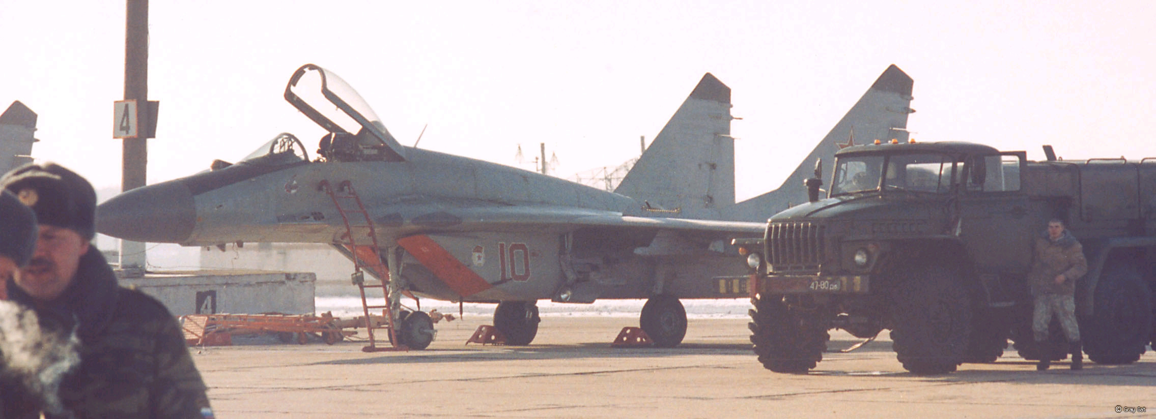 Неподалёку стояла "девяностая" спарка. Причину её нахождения на полосе в таком виде я не понял, так как в этот день она так и не взлетела :?: