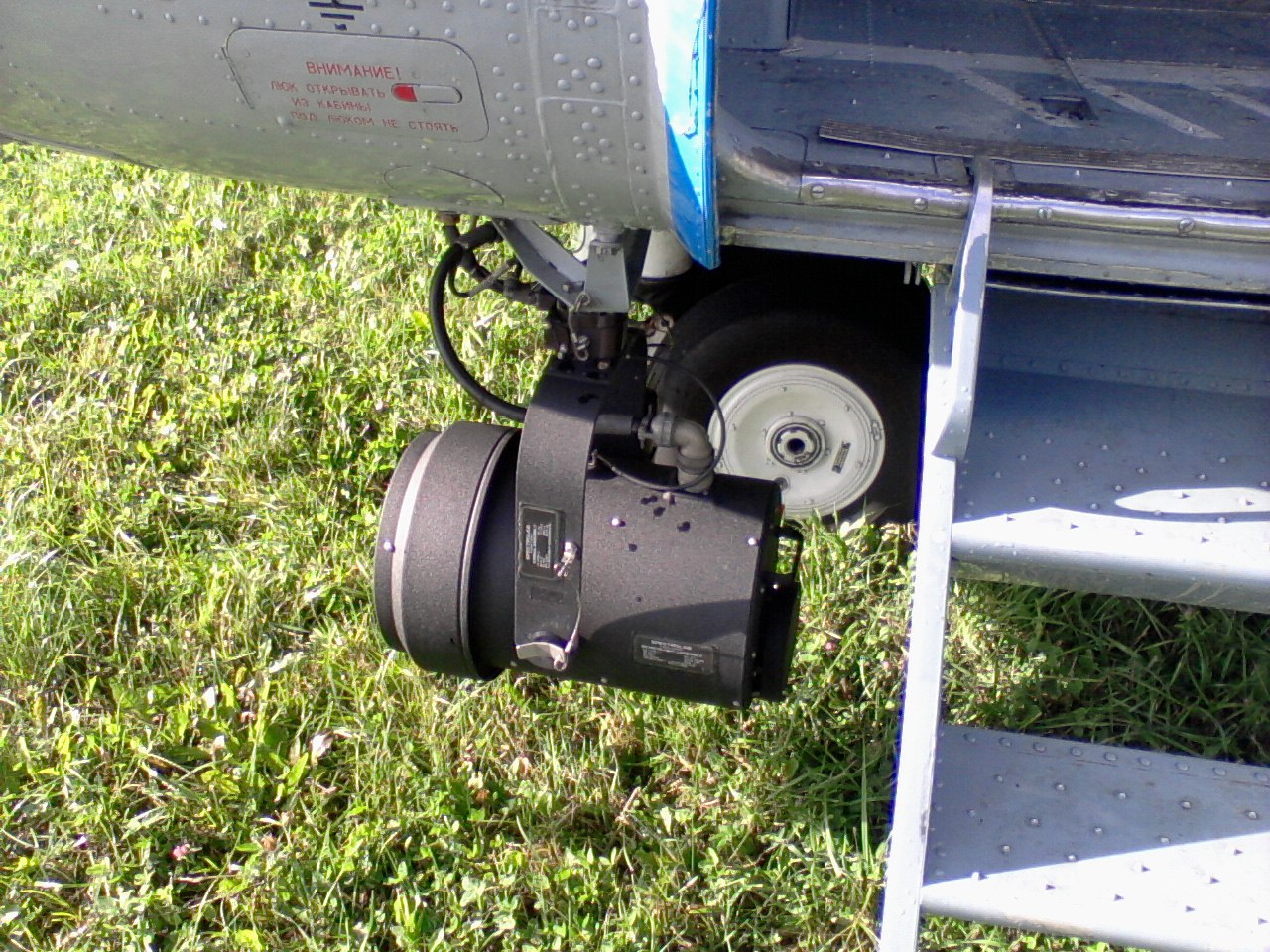 Прожектор вроде американский. Он сейчас стоит на всех вертолетах экстренных служб. Это машина 2014 года выпуска КВЗ. Двигатели вроде украинские со слов командира.