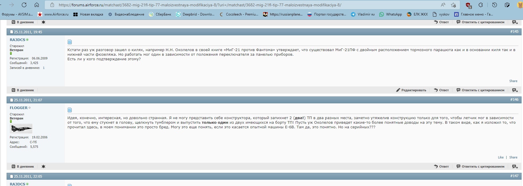 Почему лишняя или недовыпуск ? Шел серийный выпуск 21ПФ. Смотрим на фото из книжки пост треда #608. Там текст: “..один из 25 серийных МиГ-21ПФ, оборудованных..”. Если верить книжке, предсерийные ПФС даже не построены с нуля, а переоборудованы из серийных ПФ. Вторая половина 63г, вероятно к 7 ноября торопились. КБ обещало МО, что МиГом с СПС и килевым контейнером, как у “Вуду“, в этот раз уж точно “догоним и перегоним”®, как обещал Никита Сергеич.. МО, как всегда, отвечал ”БЕГОМИПТЫТЬ!!!”. Директор серийного завода парировал, что производство еще не перестроено; 63г не 36 с “массовыми порками колхозниц”, да и номенклатуру уже не стреляли.. КБ ставило штамп “задел использовать”. В сборочный командировали бригаду с ОП и темных с КБ. Возможно кили и крылья шли оттуда-же.. Наличие рудиментного люка не значит что там был парашют. Два ТП МиГ-21 нужны как зайцу стоп-сигналы®. Их не было ни у одного серийного варианта. Ни до ни после. Да и у опытных не доказано..