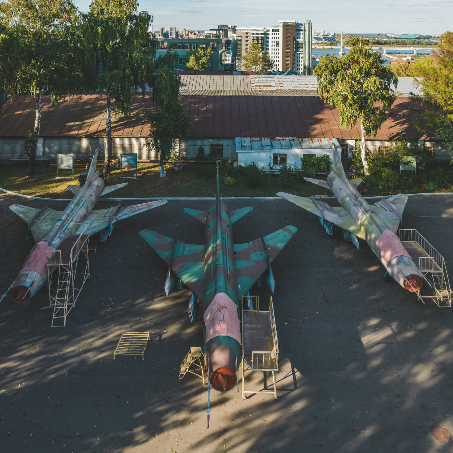 Во дворе военной кафедры Казанского авиационного института, стоят 3 простых Су-17.Тот что в центре до покраски был с бортовым номером 49 и на пилоне была надпись 8804.,по другим информация отсутствует.