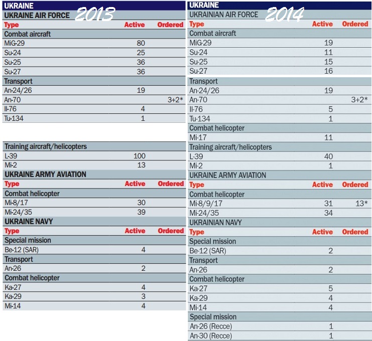 Если сравнивать с реалиями, то состав лётных машин во всех структурах ВС Украины (за исключением МЧС) на 01.02.2015 приблизительно таков: