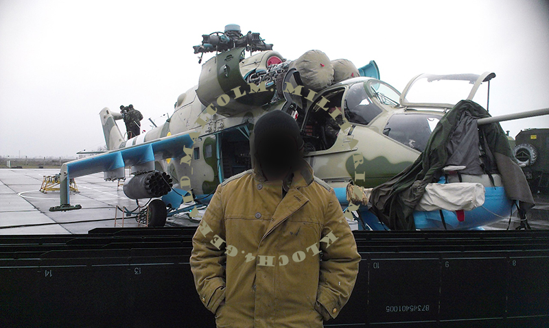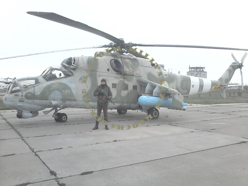 Надпись на балке "НЕБЕЗПЕЧНО" позволяет отбросить из списка "кандидатов" все Ми-24П в камуфляже "рептилия" (у них этой надписи нет)