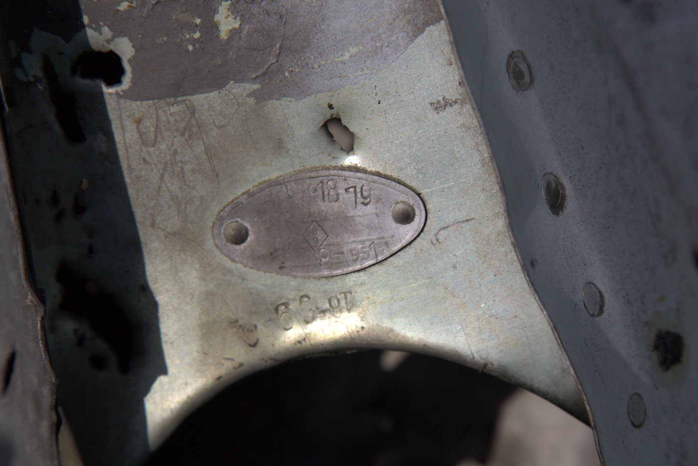 Там же, хвостовая часть расстрелянного на полигоне МиГ-15 с бирками 18-79