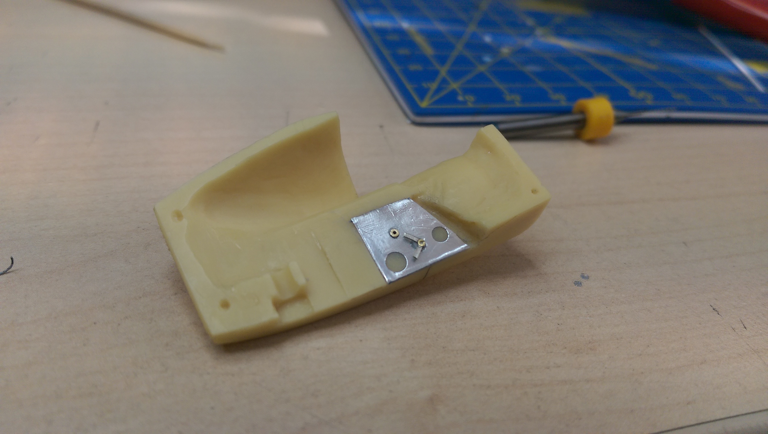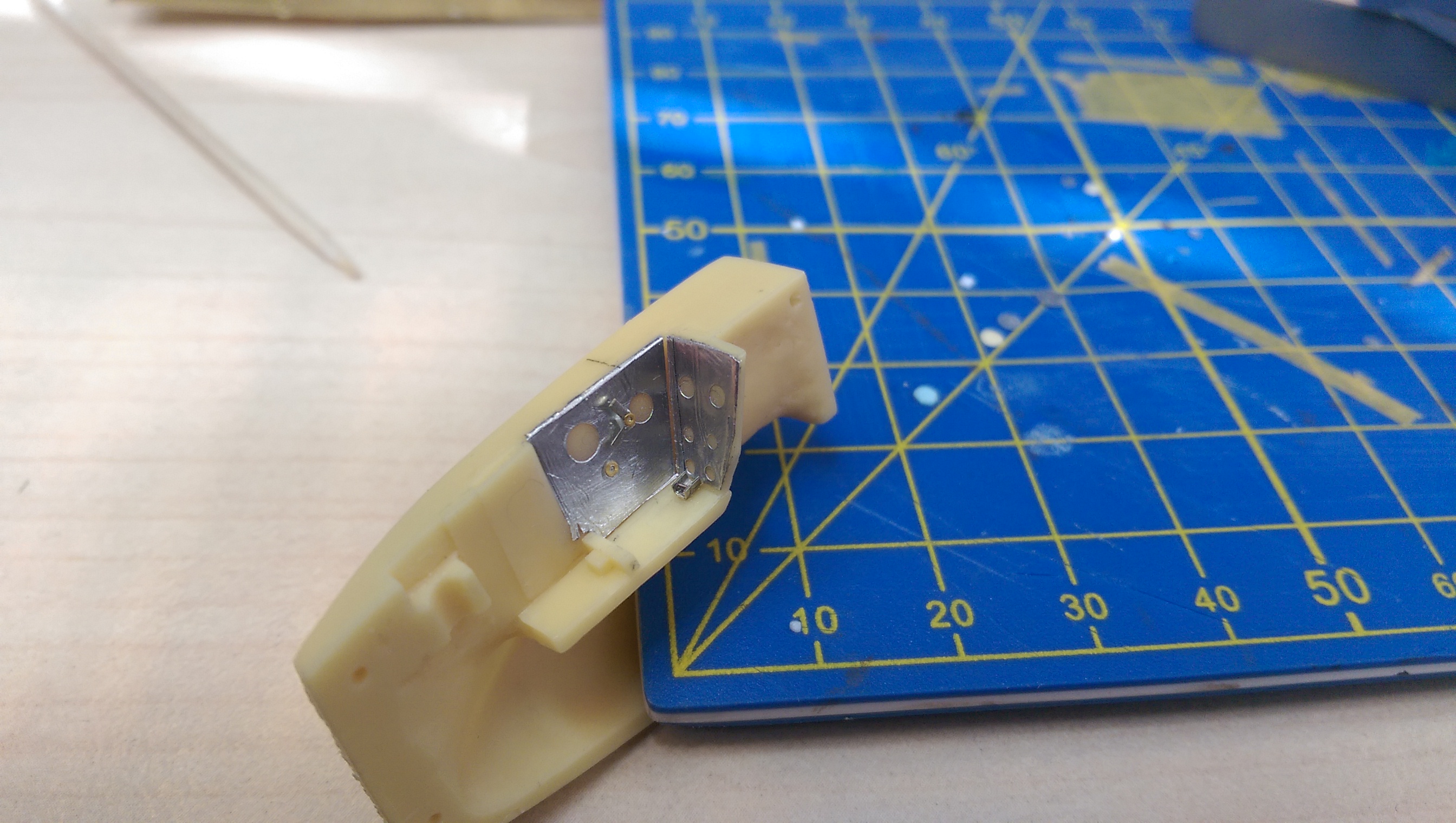 Сегодня продолжил работу над моделью. Стыкуемость деталей для смолы неплохая. Требует, конечно, выполнения правила "семь раз отмерь, один раз отрежь". Но пока без особых проблем. Чем хороша смола так тем, что легко обрабатывается.