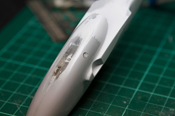 Залил суперклеем шероховатости и царапины, задул грунтовкой. Потом снова проверил на дефекты, подкорректировал суперклеем. Задул еще раз. Грунтовка - белая тамия в балончике сцеженная для аэрографа.