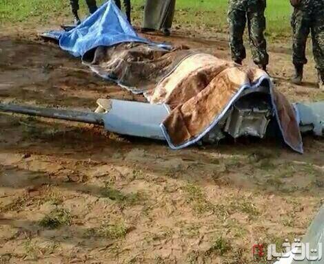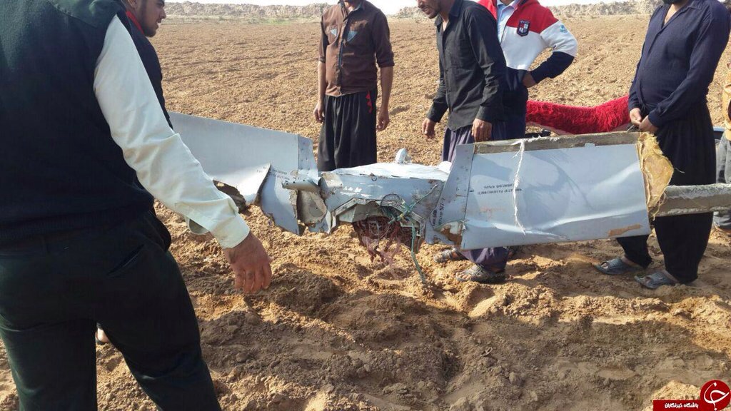 Обломки БПЛА ВВС Ирана (согласно заявлению представителя правительства Ирана) найденные в районе границы с Сирией. БПЛА, видимо, собран из российских комплектующих, судя по надписям: